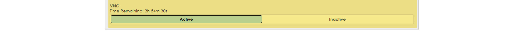- When set to Active, VNC will be enabled for a default time limit. The UX will show the time remaining before it is automatically disabled. VNC will remain enabled across reboots until the timer expires.