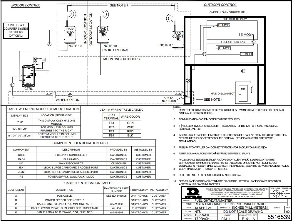 - For installs only using indoor J-box, the W-1234 cable requires the adapter 0A-2311-4511