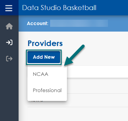 - Select a League from the drop-down menu (e.g., NCAA, Professional).