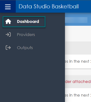 The Dashboard is where media from the provider is scheduled to outputs. It lists Recent and Upcoming Games and allows quick editing of outputs.