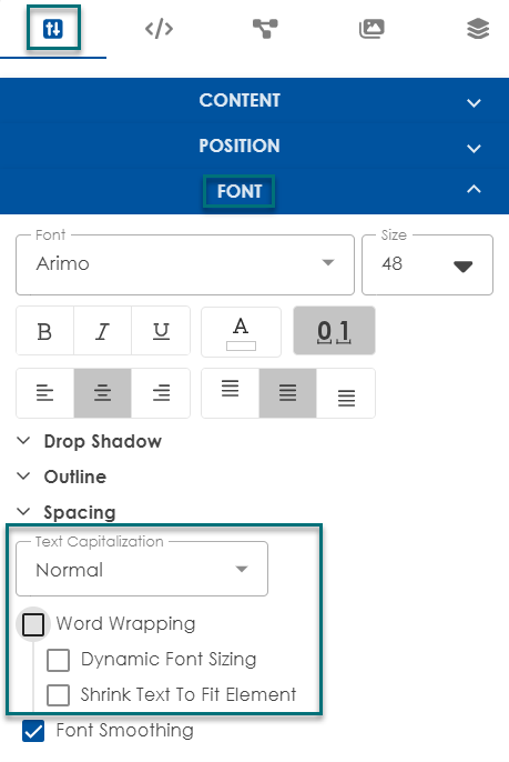 - Shrink Text to Fit Element: Automatically scales the text to fit within the bounding box.