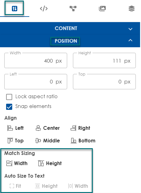 - Use Size Matching to align the size of one element with another selected element for consistent layout.
