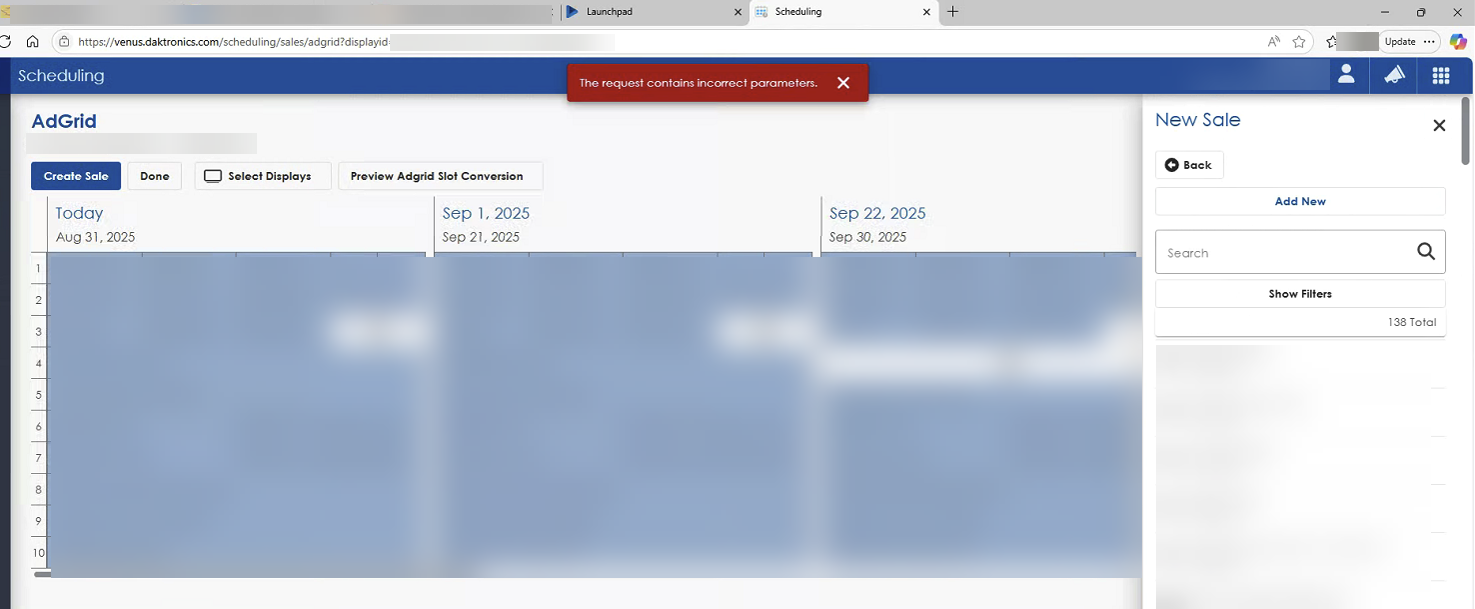 - May happen when attempting to add a new advertiser in Ad Grid: