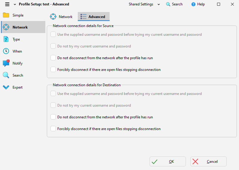 - Uncheck Do not disconnect from the network after the profile has run.