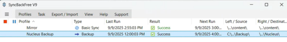 Windows 11 update 24H2 causes Syncback to not release older transfer session(s).
