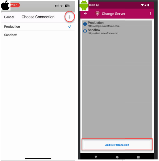 Apple: Tapping on the + sign will open a window for you to enter the Host & Name of the connection
