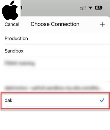 Android: Tap on the three dots in the upper righthand corner to open the Connection list and confirm you have the "dak" Connection selected.