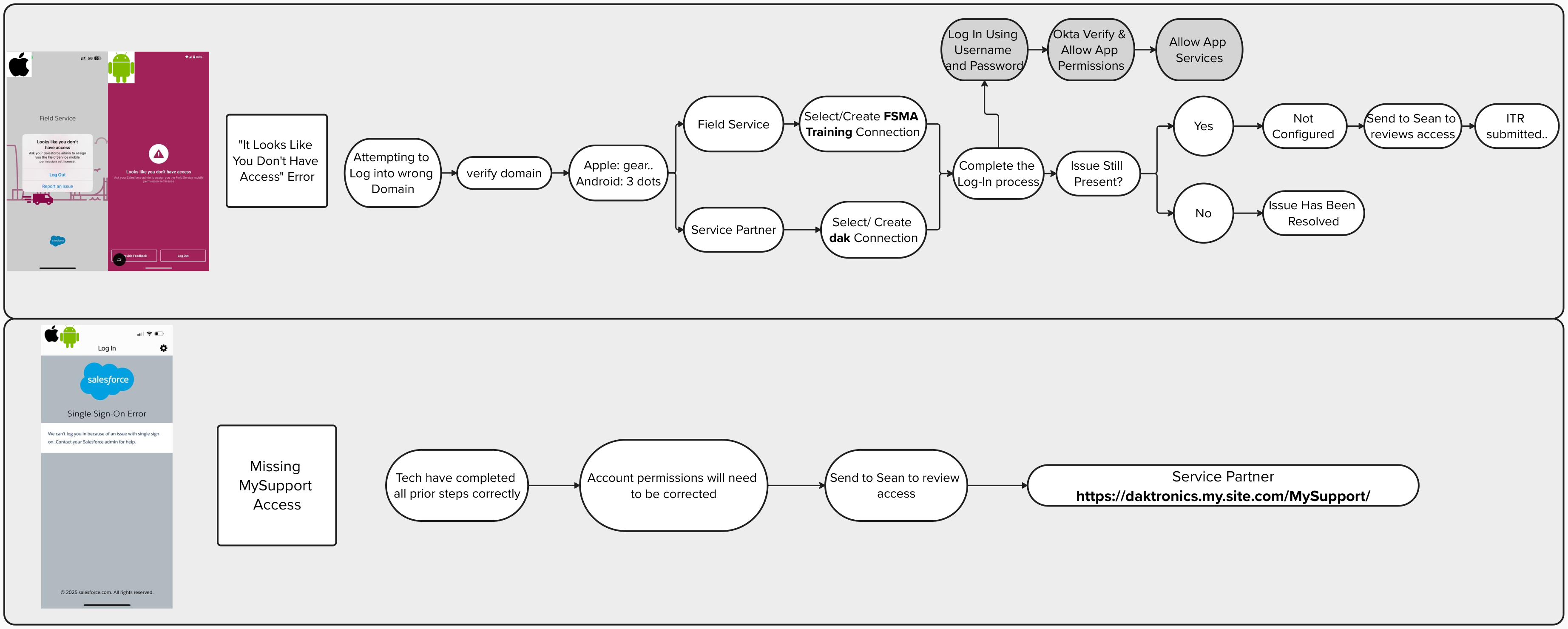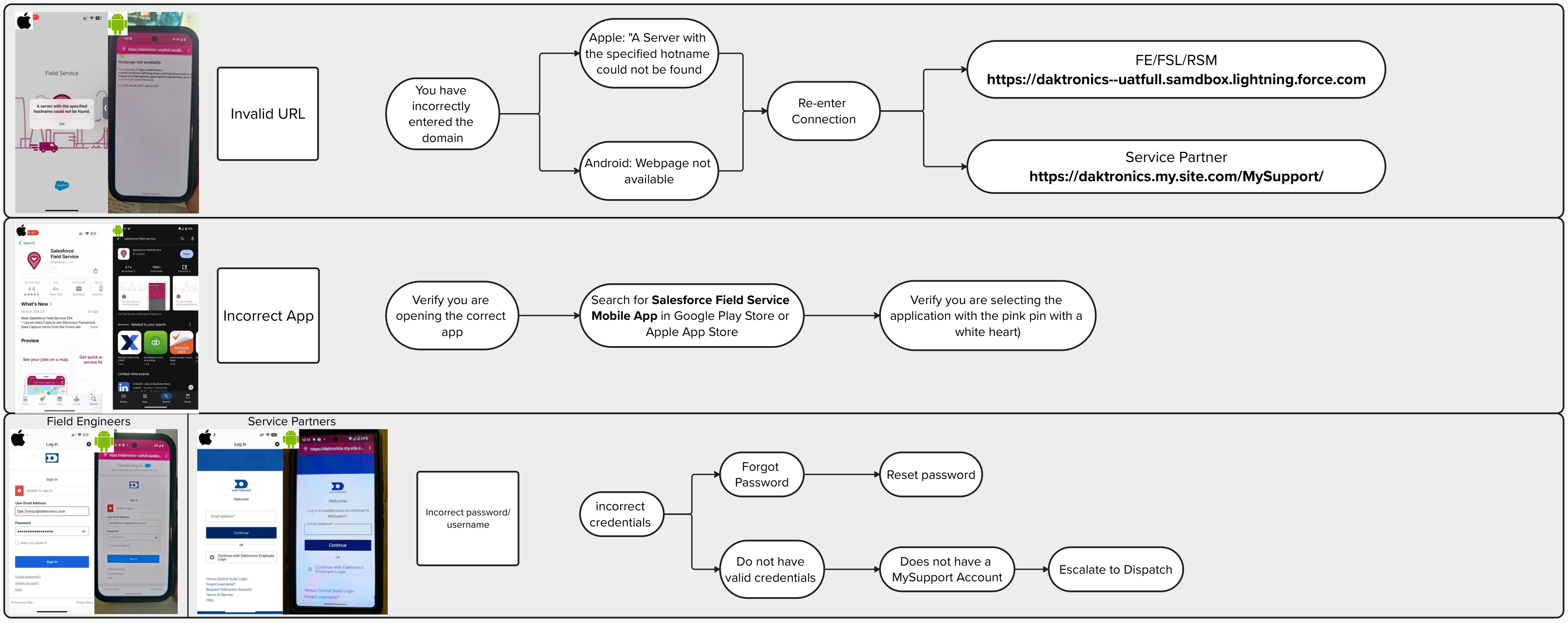 If you are able to verify you are logging into the correct Connection and still unable to proceed, please escalate to your Supervisor or Daktronics Field Service Lead.