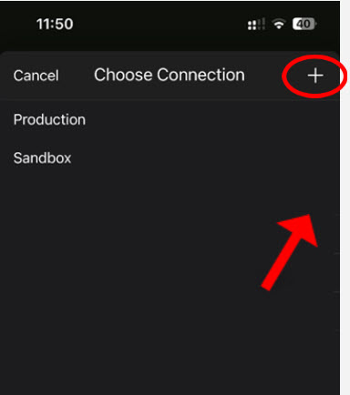 13. Tap on the “+” to create a new connection