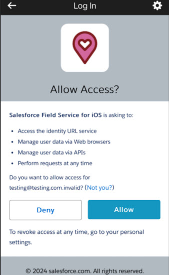 18. You must Allow Access for the Salesforce Field Service for iOS.