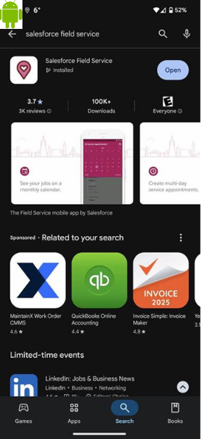 1. Download the Salesforce Field Service mobile app from the Google Play Store.