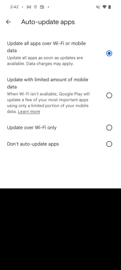 Confirms your device will initiate the app update over Wi-fi or mobile data