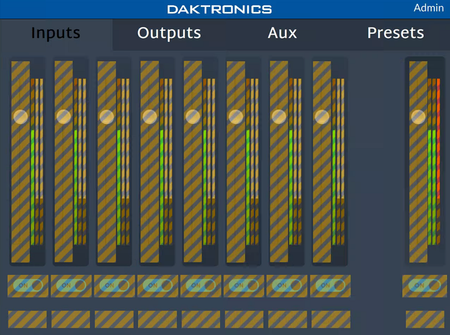 - When connected to a compatible mixer, any invalid widget is shown with hatched lines. For example, if a widget is set to control a channel which does not exist in the connected mixer, it will be shown as invalid. This will also be shown if attempting to use a new widget or feature that doesn’t exist in the firmware of the connected unit.