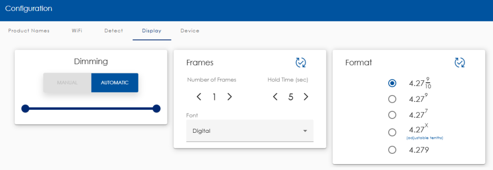 - On the section labeled FRAMES, set the Number of Frames to the amount of prices you want to cycle through, set the Hold Time (sec) to how long you want each price to show for