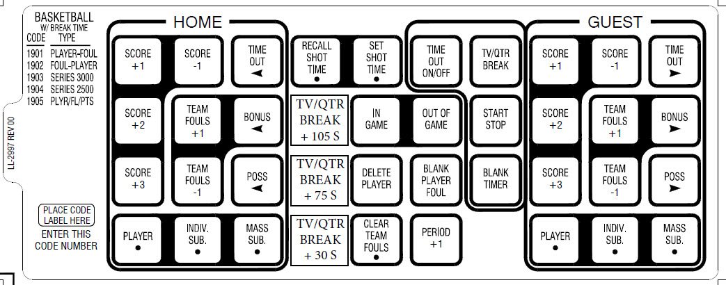 - Continue entering the values for up to 6 different break times. Pressing <ENTER> after the sixth break time will return to the main basketball operation screen.