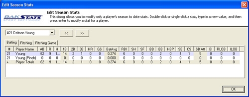 - With the correct play-by-play game open in DakStats baseball, right-click the player in the roster who is missing stats, and then click Edit Season Stats: