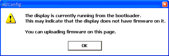 - When connecting with M2Config utility receive the following popup: