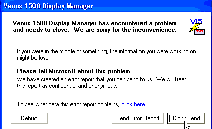 When trying to connect to display through a modem, the software gives a Venus 1500 server has stopped working error in Venus 1500 v3