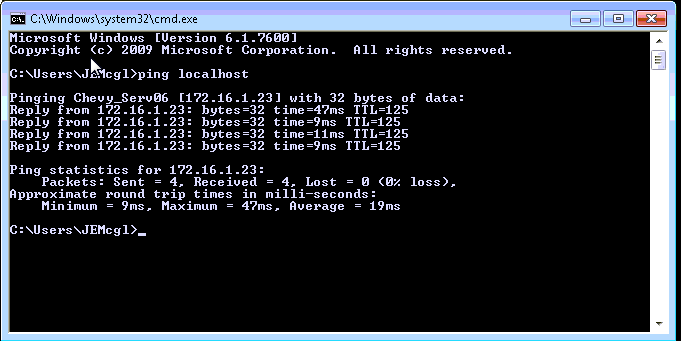- Type the following: ping localhost.