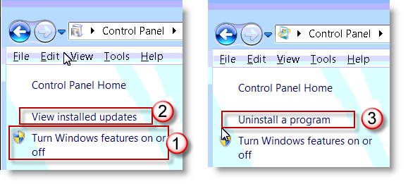 - Left panel click Turn Windows features on or off, Close/cancel window when it appears.