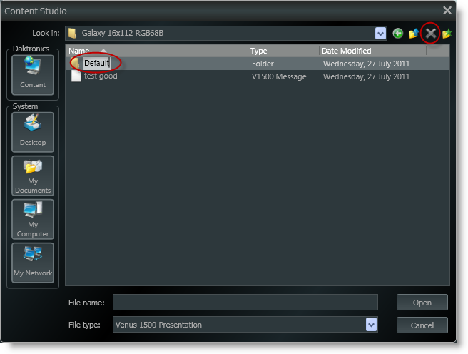 - To Delete a folder, highlight the folder, then click the red X in the top right corner of window.
