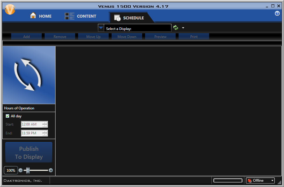 - Sending in Scheduled Mode: http://www.daktronics.com/en-us/video-gallery/Venus-1500-Sending-in-Scheduled-Mode.