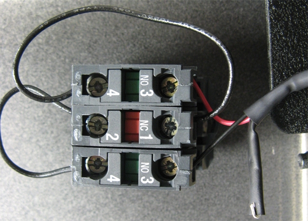 Fiber box door opened to show rear view of analog backup switch with correct pinout (connection from cabinet not shown)