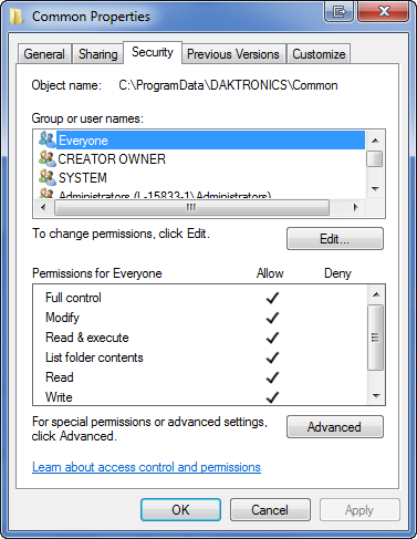 Give user "Everyone" full rights to folder "Common" by doing the following: