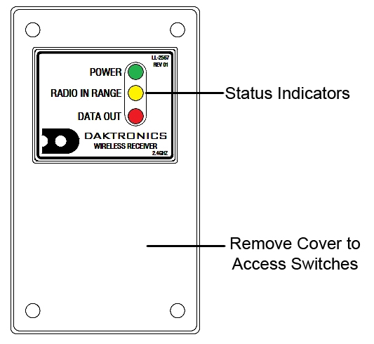 - Use a Phillips head screwdriver to gain access inside the scoreboard and reveal the receiver unit. The receiver unit is a black box connected to the antenna. It has a plastic cover and a window to view status indicators.