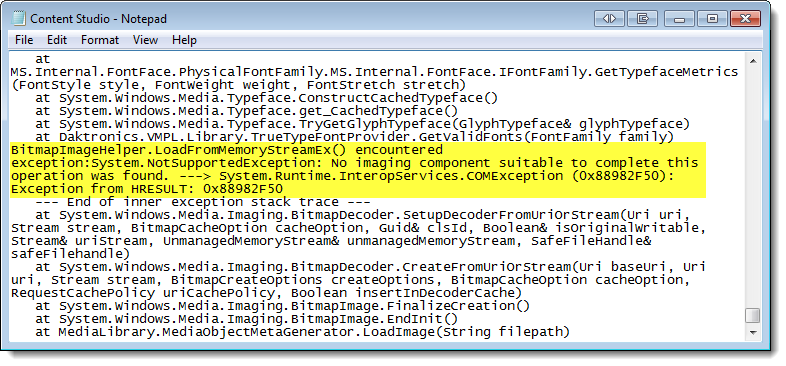 BitmapImageHelper.LoadFromMemoryStreamEx() encountered exception:System.NotSupportedException: No imaging component suitable to complete this operation was found. ---> System.Runtime.InteropServices.COMException (0x88982F50): Exception from HRESULT: 0x88982F50