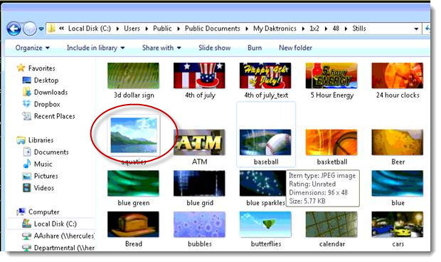 NOTE: If the media library is not directing to the Daktronics Library delete the bad image file from the last searched location. Follow the work around to find out where the last search location was.