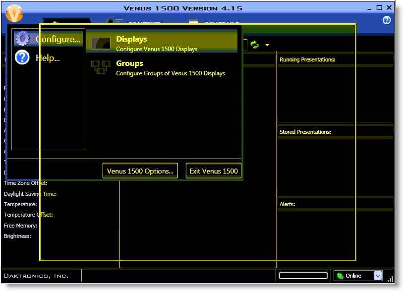 - When trying to go to Configure displays the display management window freezes and does not load in Venus 1500 v4.