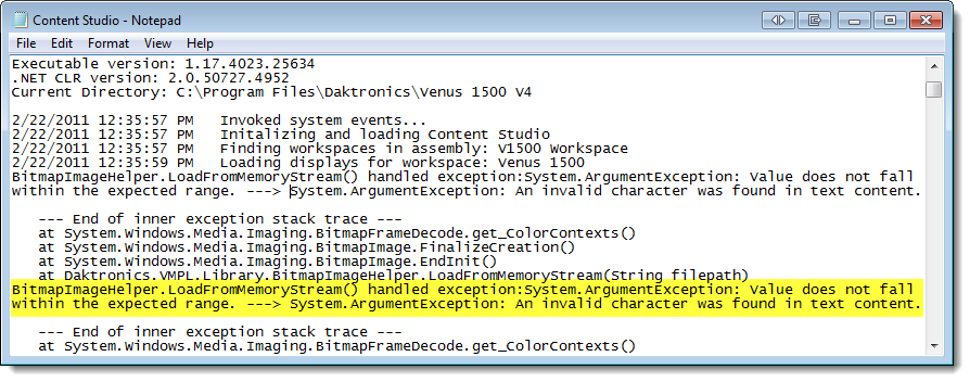 - Windows Vista\7 - C:\Program Data\Daktronics\Content Studio\Logs