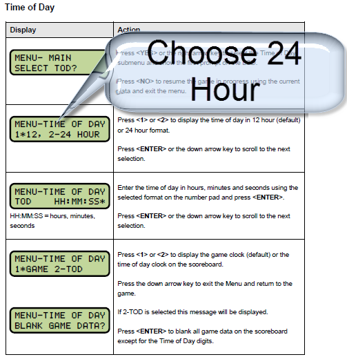 BB-314 TOD displays in 24 hour format but is set to 12 hour format