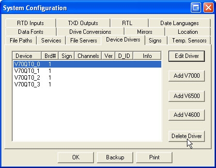 - Repeat this for each sign that has a device driver associated with it and is having an issue outputting.