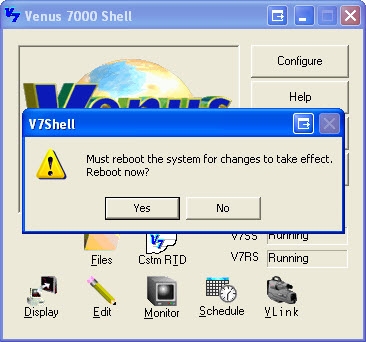 - When the computer reboots, open the Venus 7000 Shell again, click Configure, then click Device Drivers