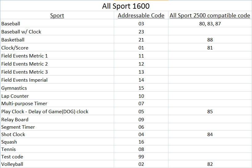 - What are the non address able codes for my scoreboard?