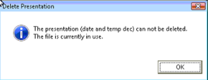 - Attempting to delete presentations from content tab. Receiving alert "The presentation cannot be deleted. The file is currently in use."