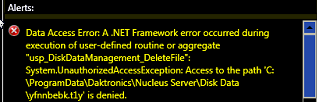 - Rights missing from Disk Data folder.