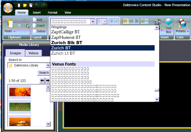 - The font list in Content Studio is replaced by little boxes or squares.