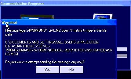 When sending message to display in Venus 1500 v3 receive error 'Message type doesn't match its type in the file path:'