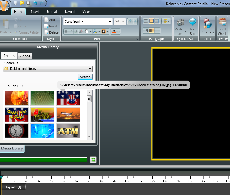 - In Content Studio, go to the images tab, search in Daktronics Library.