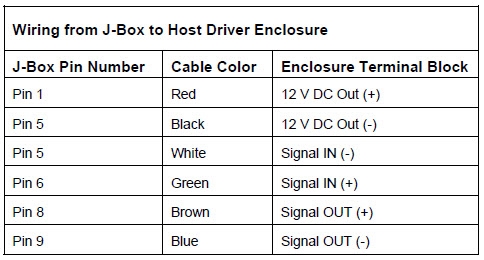- Signal out wiring from Host Driver Enclosure to outdoor J-box.