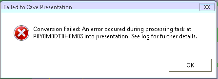 - Failed to save presentation, P0Y0M0DT0H0M0S error.