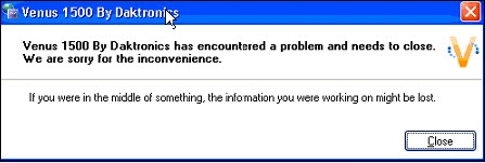 - Venus 1500 by Daktronics has encountered a problem and needs to close. We are sorry for the inconvenience. If you were in the middle of something, the information you were working on might be lost