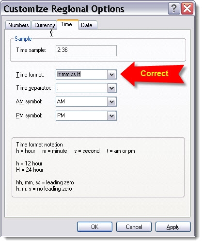 - Under Time Format, change it from h:mm back to h:mm:ss tt.