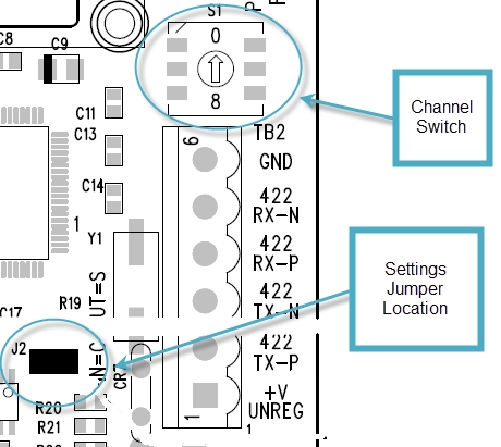 - Refer to figure 1 for Settings Jumper location. The jumper should cover only one pin for Server radio and both pins for Client radio.