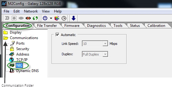 Change/adjust the NIC settings on a Galaxy controller using the M2Config utility
