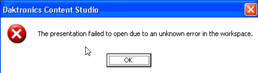 When opening a .m2m file in Content Studio, receiving: "Presentation failed to open due to an unknown error in the workspace." error