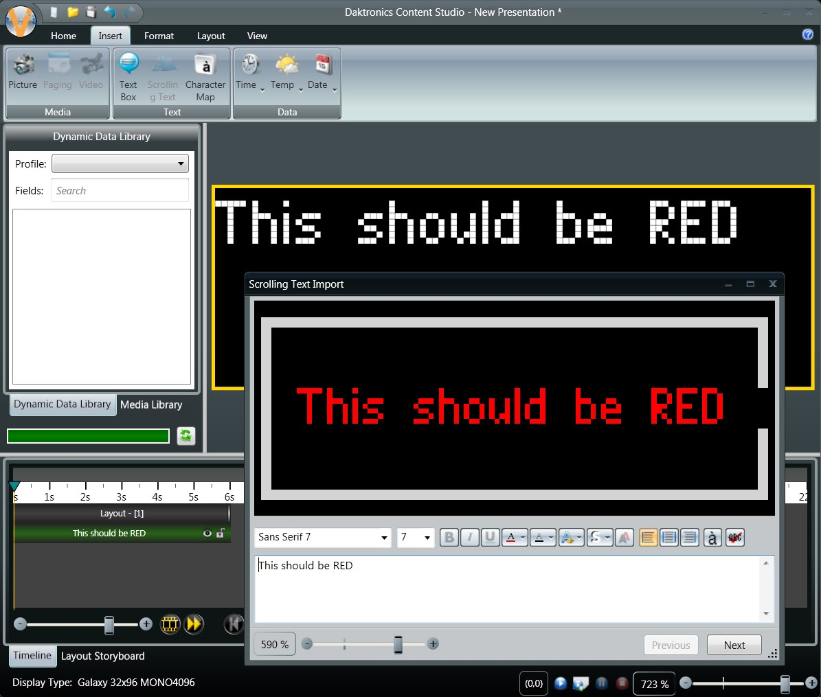 - When creating a red or amber monochrome scrolling text in Content Studio the text defaults to white after importing.